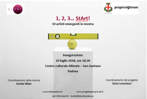 Grazie alla collaborazione con Progetto giovani del Comune di Padova e al coordinamento dell’avvocato Davide Milan, saranno riunite le opere d’arte nel prestigioso spazio del Centro Culturale Altinate San Gaetano, in una mostra che sarà visitabile dal 20 luglio al 3 settembre 2018. A lato dell’esposizione, si terranno inoltre quattro incontri in materie artistiche, giuridiche e fiscali destinati a giovani artisti, operatori e appassionati d’arte, nelle date che saranno diffuse nei prossimi giorni.
